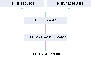 Inheritance diagram for FRHIRayGenShader:Additional Inherited Members | ||