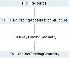 Inheritance diagram for FRHIRayTracingGeometry:Public Member Functions | |