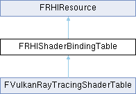 Inheritance diagram for FRHIShaderBindingTable:Public Member Functions | |
