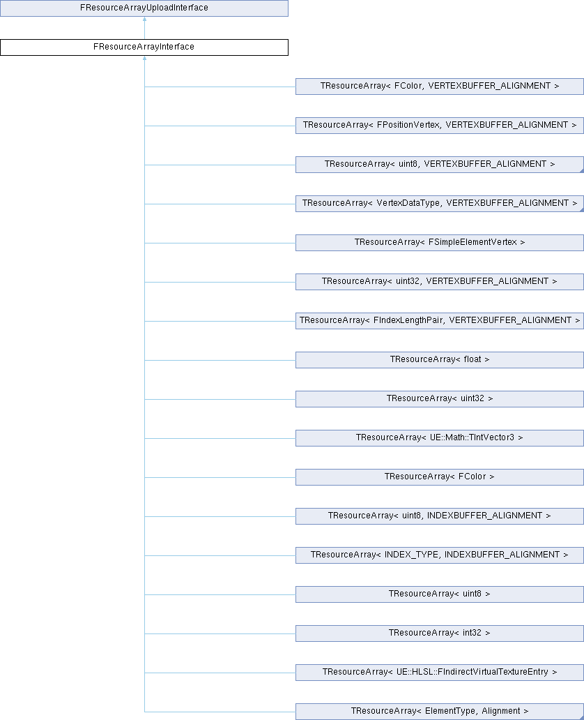 Inheritance diagram for FResourceArrayInterface:Public Member Functions | |