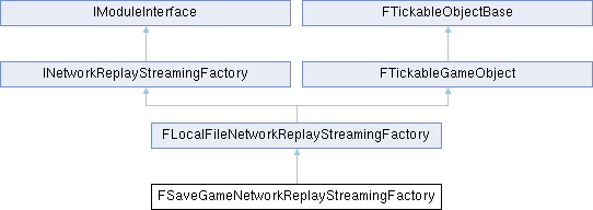 Inheritance diagram for FSaveGameNetworkReplayStreamingFactory:Additional Inherited Members | |