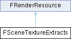Inheritance diagram for FSceneTextureExtracts:Struct containing references to extracted RHI resources after RDG execution. All textures are left in an SRV read state, so they can safely be used for read without being re-imported into RDG. Likewise, the uniform buffer is non-RDG and can be used as is.