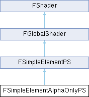 Inheritance diagram for FSimpleElementAlphaOnlyPS:Simple pixel shader that just reads from an alpha-only texture