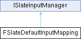 Inheritance diagram for FSlateDefaultInputMapping:Public Member Functions | |