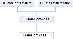 Inheritance diagram for FSlateFontAtlasRHI:Representation of a texture for fonts in which characters are packed tightly based on their bounding rectangle