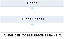 Inheritance diagram for FSlatePostProcessDirectResamplePS:| FSlatePostProcessDirectResamplePS::DECLARE_GLOBAL_SHADER | ( | FSlatePostProcessDirectResamplePS | ) |