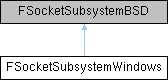 Inheritance diagram for FSocketSubsystemWindows:Public Member Functions | |