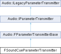 Inheritance diagram for FSoundCueParameterTransmitter:Public Attributes | |