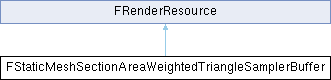 Inheritance diagram for FStaticMeshSectionAreaWeightedTriangleSamplerBuffer:Represents GPU resource needed for area weighted uniform sampling of a mesh surface.