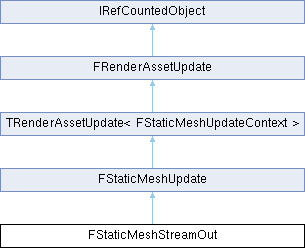 Inheritance diagram for FStaticMeshStreamOut:A streamout that doesn't actually touches the CPU data. Required because DDC stream in doesn't reset.