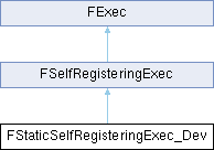 Inheritance diagram for FStaticSelfRegisteringExec_Dev:Public Member Functions | |