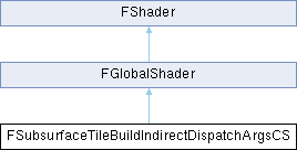 Inheritance diagram for FSubsurfaceTileBuildIndirectDispatchArgsCS:Additional Inherited Members | |