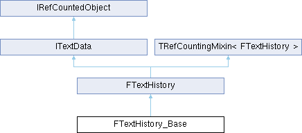 Inheritance diagram for FTextHistory_Base:Public Attributes | |