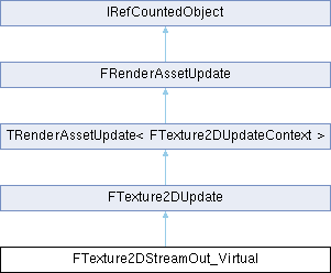 Inheritance diagram for FTexture2DStreamOut_Virtual:Protected Member Functions | |