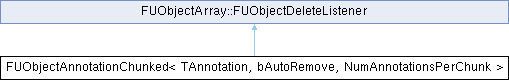 Inheritance diagram for FUObjectAnnotationChunked< TAnnotation, bAutoRemove, NumAnnotationsPerChunk >:FUObjectAnnotationChunked is a helper class that is used to store dense, fast and temporary, editor only, external or other tangential information about subsets of UObjects.
