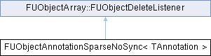 Inheritance diagram for FUObjectAnnotationSparseNoSync< TAnnotation >:Public Member Functions | |
