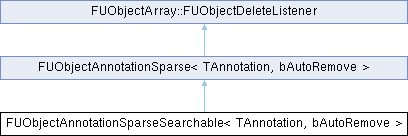 Inheritance diagram for FUObjectAnnotationSparseSearchable< TAnnotation, bAutoRemove >:Additional Inherited Members | |
