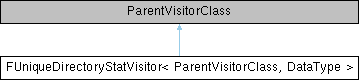 Inheritance diagram for FUniqueDirectoryStatVisitor< ParentVisitorClass, DataType >:Public Member Functions | |