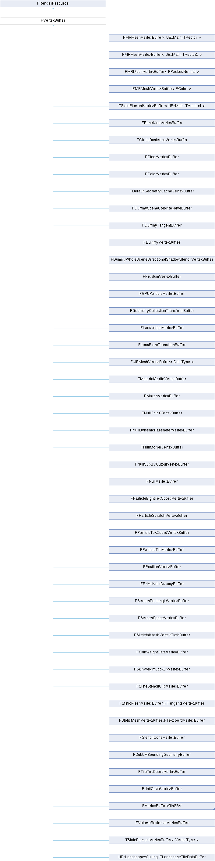 Reimplemented in TSlateElementVertexBuffer< VertexType >, TSlateElementVertexBuffer< UE::Math::TVector4 >, FSlateStencilClipVertexBuffer, FSubUVBoundingGeometryBuffer, FDefaultGeometryCacheVertexBuffer, FDummyTangentBuffer, FParticleTileVertexBuffer, FGPUParticleVertexBuffer, FNullSubUVCutoutVertexBuffer, FMorphVertexBuffer, FParticleScratchVertexBuffer, FColorVertexBuffer, FPositionVertexBuffer, FSkeletalMeshVertexClothBuffer, FSkinWeightLookupVertexBuffer, FSkinWeightDataVertexBuffer, FBoneMapVertexBuffer, FNullColorVertexBuffer, FNullVertexBuffer, FVertexBufferWithSRV, and FPrimitiveIdDummyBuffer.