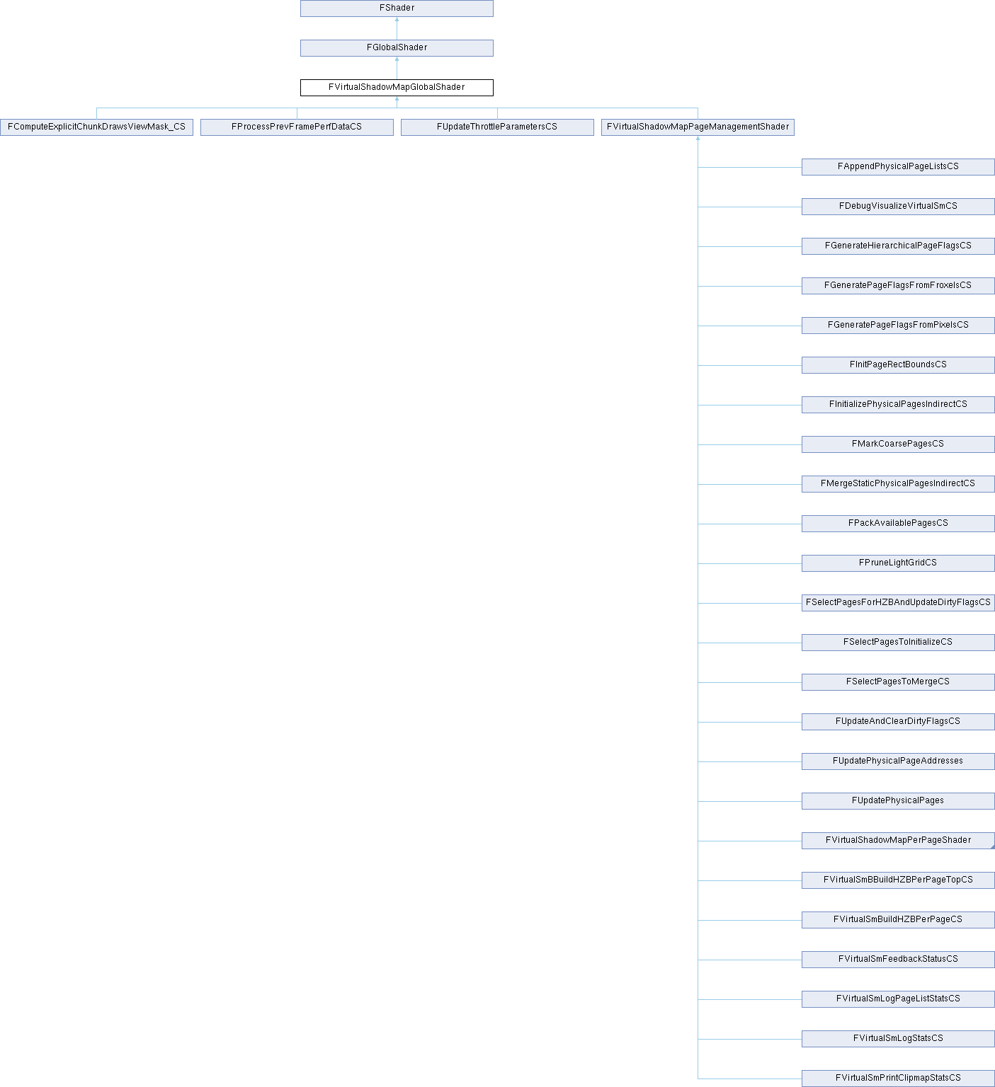 Inheritance diagram for FVirtualShadowMapGlobalShader:Additional Inherited Members | |
