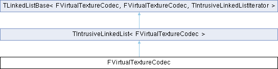 Inheritance diagram for FVirtualTextureCodec:Public Member Functions | |
