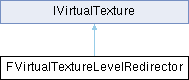 Inheritance diagram for FVirtualTextureLevelRedirector:IVirtualTexture implementation that redirects requests to one of two children depending on vLevel. We take ownership of the referenced IVirtualTexture objects meaning that they are destroyed when this object is destroyed.