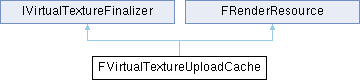 Inheritance diagram for FVirtualTextureUploadCache:Finalizer implementation for uploading virtual textures. Handles management of upload buffers and copying streamed data to the GPU physical texture.