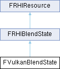 Inheritance diagram for FVulkanBlendState:Public Member Functions | |