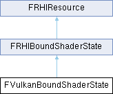 Inheritance diagram for FVulkanBoundShaderState:Additional Inherited Members | |