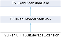 Inheritance diagram for FVulkanKHR16BitStorageExtension:Public Attributes | |