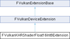 Inheritance diagram for FVulkanKHRShaderFloat16Int8Extension:Public Attributes | |