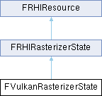 Inheritance diagram for FVulkanRasterizerState:Public Member Functions | |