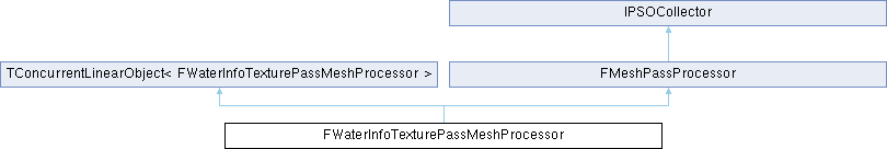 | | FWaterInfoTexturePassMeshProcessor (const FScene *Scene, ERHIFeatureLevel::Type FeatureLevel, const FSceneView *InViewIfDynamicMeshCommand, FMeshPassDrawListContext *InDrawListContext, bool bIsMobile) |