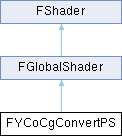 Inheritance diagram for FYCoCgConvertPS:Pixel convert to resize an YCoCg texture.
