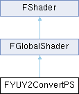 Inheritance diagram for FYUY2ConvertPS:Pixel shader to convert a YUY2 frame to RGBA.