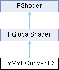Inheritance diagram for FYVYUConvertPS:Pixel shader to convert a YVYU frame to RGBA.