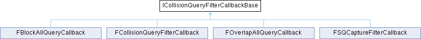 Inheritance diagram for ICollisionQueryFilterCallbackBase:Public Member Functions | |