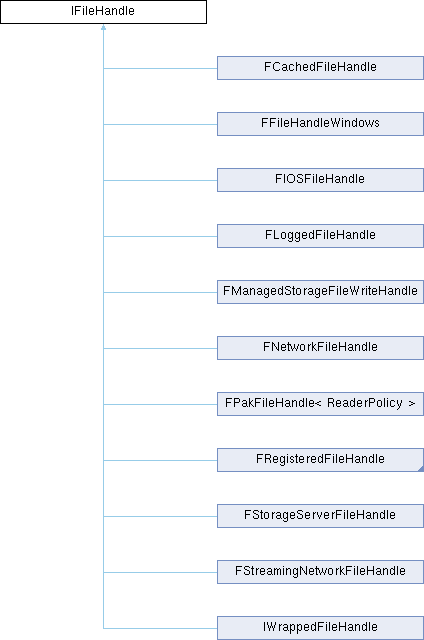 Implemented in FFileHandleApple, FIOSFileHandle, FFileHandleUnix, FFileHandleWindows, FCachedFileHandle, FLoggedFileHandle, FManagedStorageFileWriteHandle, FNetworkFileHandle, FPakFileHandle< ReaderPolicy >, FStorageServerFileHandle, and FStreamingNetworkFileHandle.