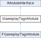 Inheritance diagram for IGameplayTagsModule:Static Public Member Functions | |