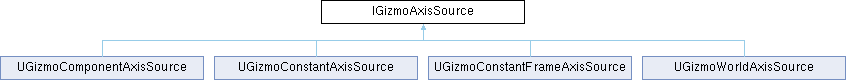 Implemented in UGizmoConstantAxisSource, UGizmoConstantFrameAxisSource, UGizmoWorldAxisSource, and UGizmoComponentAxisSource.