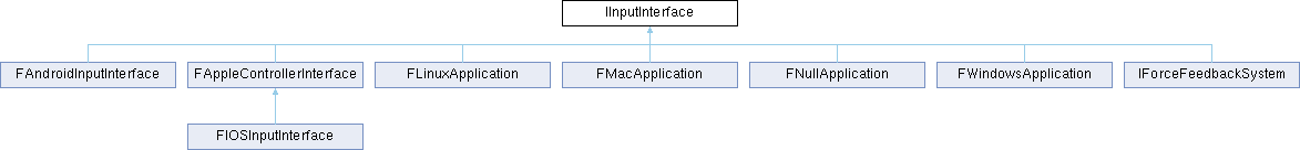 Implemented in FAppleControllerInterface, FAndroidInputInterface, FIOSInputInterface, FLinuxApplication, FMacApplication, FNullApplication, and FWindowsApplication.