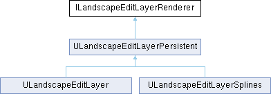 Inheritance diagram for ILandscapeEditLayerRenderer:Interface that needs to be implemented for anything that can render heightmap/weightmap/visibility when merging landscape edit layers. Ideally it would have been defined in the UE::Landscape::EditLayers namespace but UHT prevents us from doing so. The renderers are provided to the landscape by a IEditLayerRendererProvider.