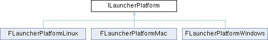 Inheritance diagram for ILauncherPlatform:Public Member Functions | |