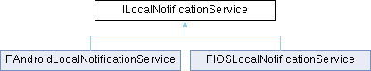 Inheritance diagram for ILocalNotificationService:Public Member Functions | |
