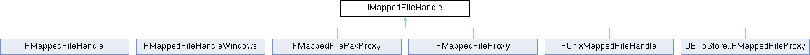 Implemented in FMappedFileHandle, FUnixMappedFileHandle, FMappedFileHandleWindows, UE::IoStore::FMappedFileProxy, FMappedFileProxy, and FMappedFilePakProxy.