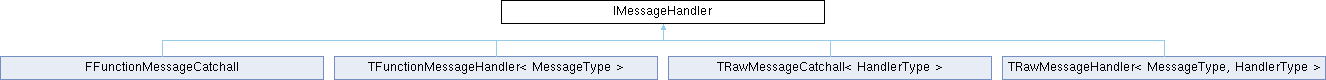 Implemented in TRawMessageCatchall< HandlerType >, TRawMessageHandler< MessageType, HandlerType >, FFunctionMessageCatchall, and TFunctionMessageHandler< MessageType >.
