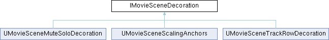 Inheritance diagram for IMovieSceneDecoration:Public Member Functions | |