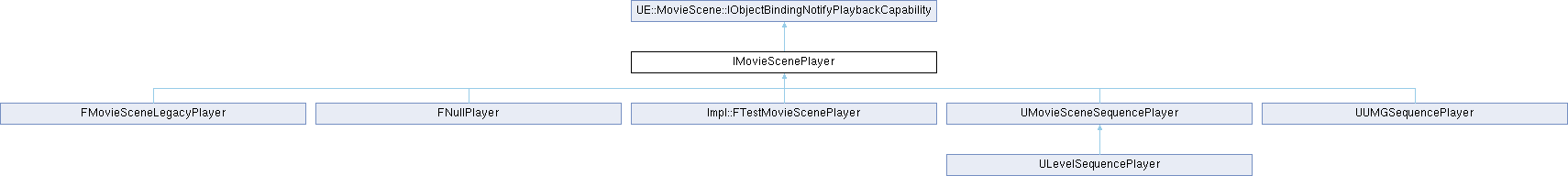 Implemented in FNullPlayer, Impl::FTestMovieScenePlayer, FMovieSceneLegacyPlayer, UMovieSceneSequencePlayer, and UUMGSequencePlayer.