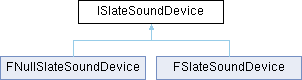 Inheritance diagram for ISlateSoundDevice:Public Member Functions | |