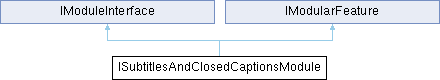 Inheritance diagram for ISubtitlesAndClosedCaptionsModule:Public Member Functions | |